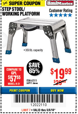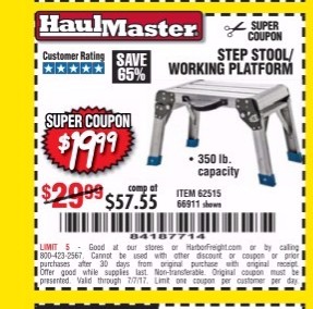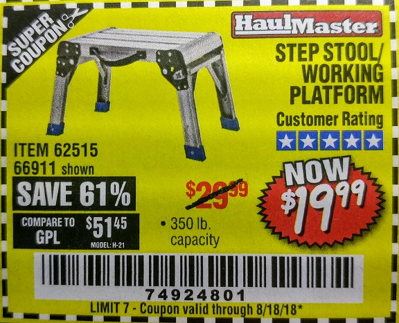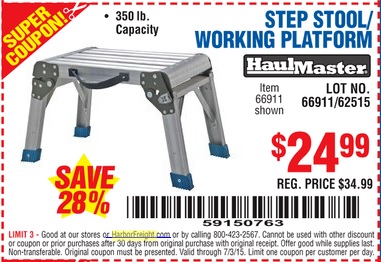 HAUL-MASTER 18 IN. STEP STOOL WORKING PLATFORM Lot No. 66911 Expired: 7/24/17 - $19.99 Coupon Code: '29697440'
