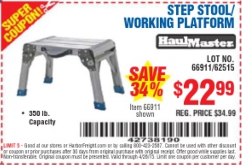 HAUL-MASTER 18 IN. STEP STOOL WORKING PLATFORM Lot No. 66911 Expired: 4/26/15 - $22.99 Coupon Code: '42738190'