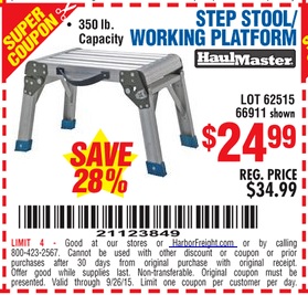 HAUL-MASTER 18 IN. STEP STOOL WORKING PLATFORM Lot No. 66911 Expired: 9/15/15 - $24.99 Coupon Code: '86908294'