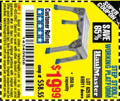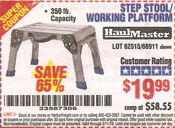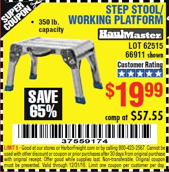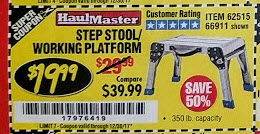 HAUL-MASTER 18 IN. STEP STOOL WORKING PLATFORM Lot No. 66911 Expired: 2/11/16 - $19.99 Coupon Code: '23587306'