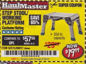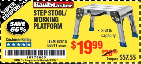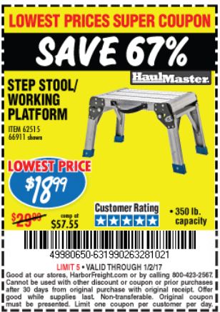 HAUL-MASTER 18 IN. STEP STOOL WORKING PLATFORM Lot No. 66911 Expired: 6/19/17 - $19.99 Coupon Code: '79577938'
