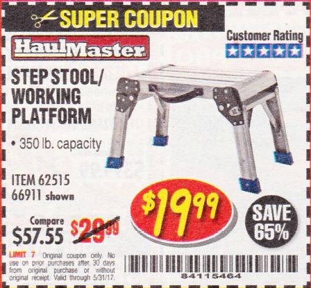 HAUL-MASTER 18 IN. STEP STOOL WORKING PLATFORM Lot No. 66911 Expired: 5/31/17 - $19.99 Coupon Code: '84115464'