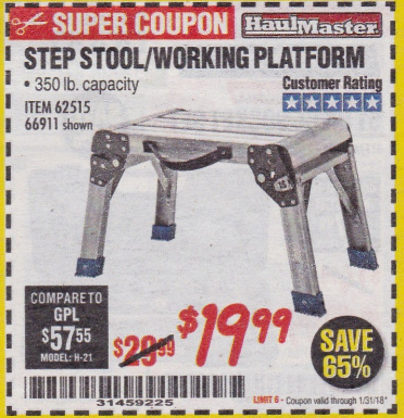 HAUL-MASTER 18 IN. STEP STOOL WORKING PLATFORM Lot No. 66911 Expired: 1/31/18 - $19.99 Coupon Code: '31459225'