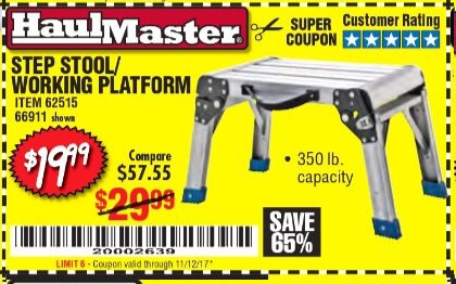 HAUL-MASTER 18 IN. STEP STOOL WORKING PLATFORM Lot No. 66911 Expired: 11/12/17 - $19.99 Coupon Code: '20002639'