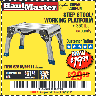 HAUL-MASTER 18 IN. STEP STOOL WORKING PLATFORM Lot No. 66911 Expired: 10/29/18 - $19.99 Coupon Code: '14536373'