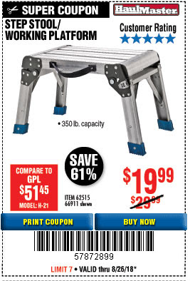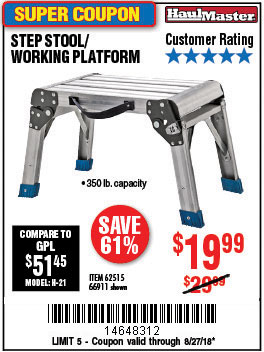 HAUL-MASTER 18 IN. STEP STOOL WORKING PLATFORM Lot No. 66911 Expired: 6/26/18 - $19.99 Coupon Code: '79312675'