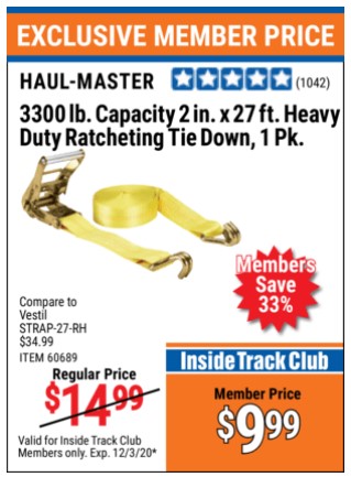 HAUL-MASTER 2" X 27 FT, 3300LB CAPACITY RATCHETING TIE DOWN Lot No. 95106/60689/62134/63012/56669 Expired: 7/5/20 - $9.99 Coupon Code: '10581156'
