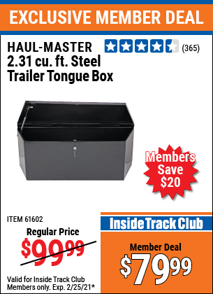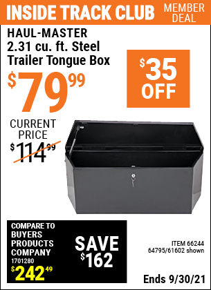 ITC HAUL-MASTER 2.31 CU. FT. STEEL TRAILER TONGUE BOX Lot No. 61602/66244 Expired: 9/30/21 - $79.99 Coupon Code: 'n/a'