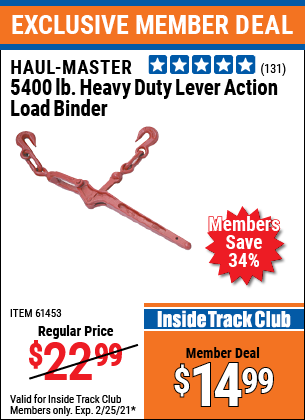 ITC HAUL-MASTER 5400LB. HEAVY DUTY LEVER ACTION LOAD BINDER Lot No. 61453 Expired: 2/25/21 - $14.99 Coupon Code: 'n/a'