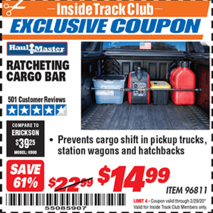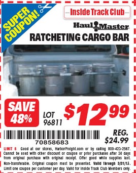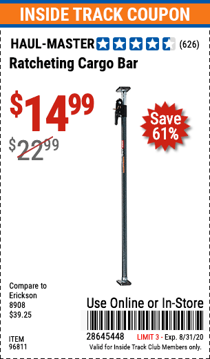 ITC HAUL-MASTER RATCHETING CARGO BAR Lot No. 96811 Valid Thru: 10/30/25 - $17.99 Coupon Code: 'n/a' (current price - 20% = 0) add to list