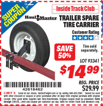 ITC HAUL-MASTER TRAILER SPARE TIRE CARRIER Lot No. 93341 Expired: 7/31/15 - $14.99 Coupon Code: '42618462'