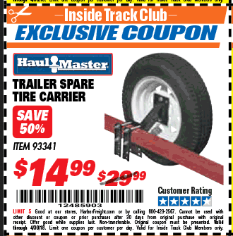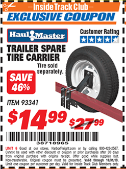 ITC HAUL-MASTER TRAILER SPARE TIRE CARRIER Lot No. 93341 Valid Thru: 10/30/25 - $17.99 Coupon Code: 'n/a' (current price - 10% = 0) add to list