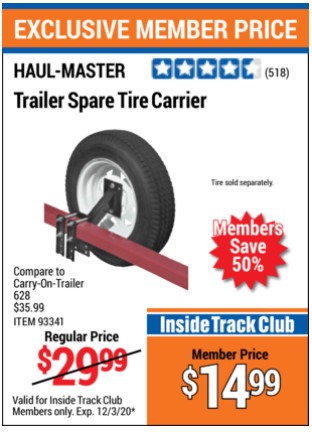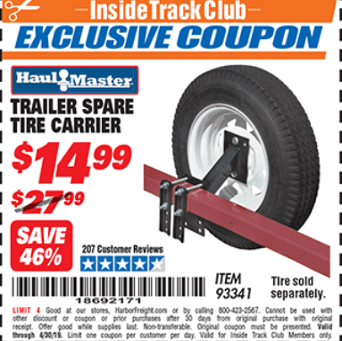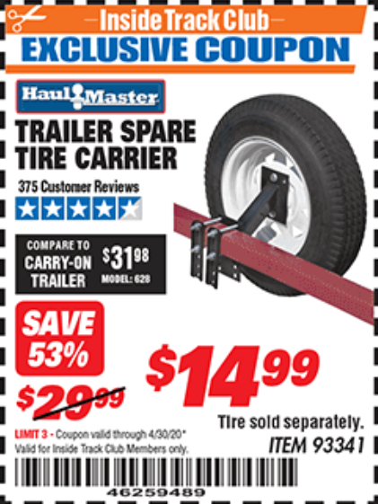 HAUL-MASTER TRAILER SPARE TIRE CARRIER Lot No. 93341 Expired: 12/3/20 - $14.99 Coupon Code: 'n/a'