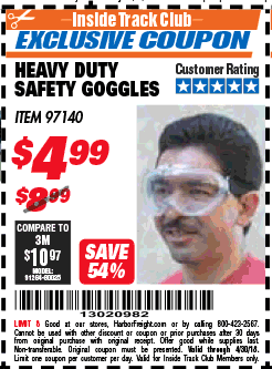 ITC HEAVY DUTY SAFETY GOGGLES Lot No. 97140 Expired: 4/30/18 - $4.99 Coupon Code: '13020982'