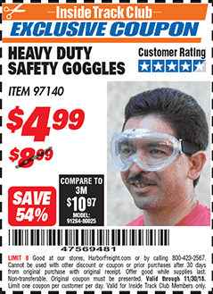 ITC HEAVY DUTY SAFETY GOGGLES Lot No. 97140 Expired: 11/30/18 - $4.99 Coupon Code: '47569481'