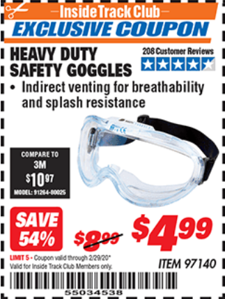 ITC HEAVY DUTY SAFETY GOGGLES Lot No. 97140 Expired: 2/29/20 - $4.99 Coupon Code: '55034538'