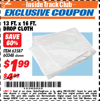 ITC HFT 13 FT. X 16 FT. DROP CLOTH Lot No. 64127/63587 Expired: 4/30/18 - $1.99 Coupon Code: '12342025'