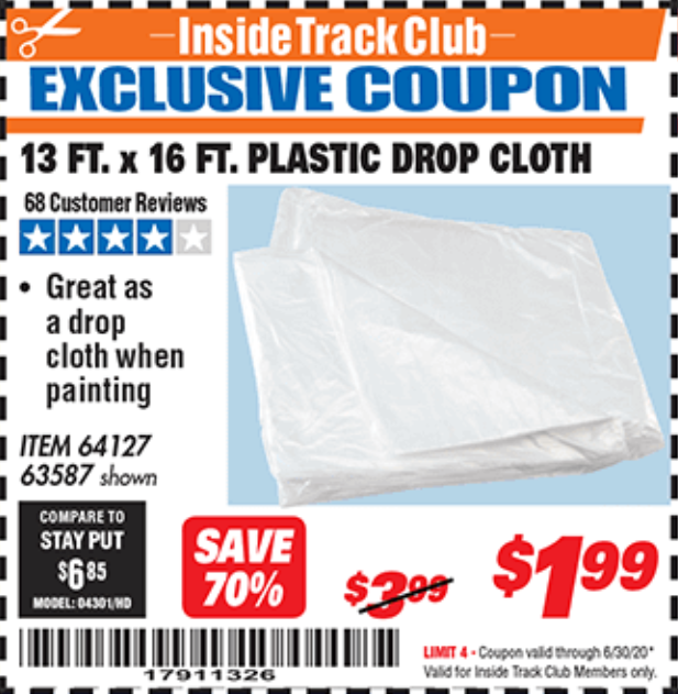 ITC HFT 13 FT. X 16 FT. DROP CLOTH Lot No. 64127/63587 Expired: 6/30/20 - $1.99 Coupon Code: '17911326'