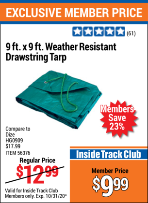 ITC HFT 9 FT. X 9 FT. WEATHER-RESISTANT DRAWSTRING TARP Lot No. 56376 Valid Thru: 10/30/25 - $9.99 Coupon Code: 'n/a' (current price - 10% = 0) add to list