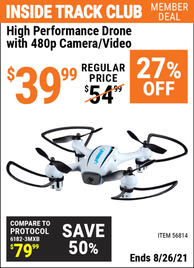 ITC HIGH PERFORMANCE DRONE WITH 480P CAMERA/VIDEO Lot No. 56814 Expired: 8/26/21 - $39.99 Coupon Code: 'n/a'