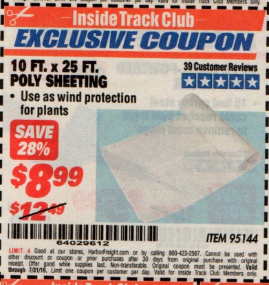 ITC HUSKY 10 FT. X 25 FT. POLY SHEETING Lot No. 95144 Expired: 6/30/15 - $7.99 Coupon Code: '89682177'
