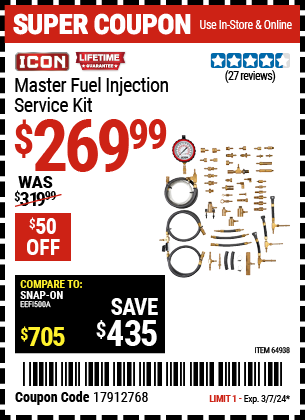 ICON MASTER FUEL INJECTION SERVICE KIT Lot No. 64938 Expired: 3/7/24 - $269.99 Coupon Code: '17912768'