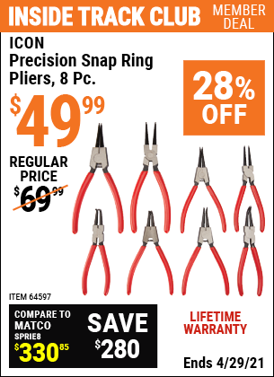 ITC ICON PRECISION SNAP RING PLIERS, 8-PIECE Lot No. 64597 Expired: 4/29/21 - $49.99 Coupon Code: 'n/a'