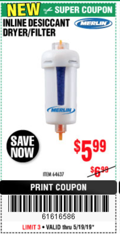 INLINE DESICCANT DRYER/FILTER Lot No. 64637 Expired: 5/19/19 - $5.99 Coupon Code: '61616586'