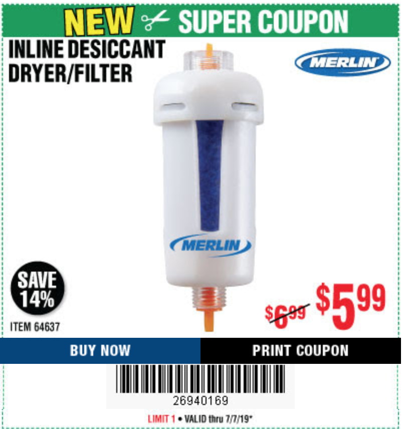 INLINE DESICCANT DRYER/FILTER Lot No. 64637 Expired: 7/7/19 - $5.99 Coupon Code: '26940169'