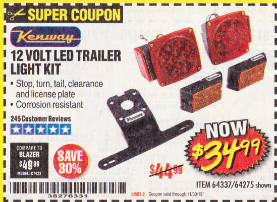 KENWAY 12V LED TRAILER LIGHT KIT Lot No. 64275 Expired: 11/30/19 - $34.99 Coupon Code: '38276331'