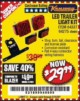 KENWAY 12V LED TRAILER LIGHT KIT Lot No. 64275 Expired: 9/22/19 - $34.99 Coupon Code: '16479450'