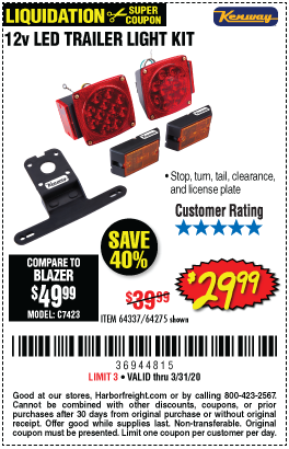 KENWAY 12V LED TRAILER LIGHT KIT Lot No. 64275 Expired: 3/31/19 - $29.99 Coupon Code: '20066769'