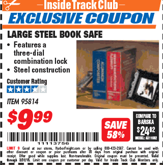ITC LARGE STEEL BOOK SAFE Lot No. 95814 Expired: 9/30/17 - $9.99 Coupon Code: '20517945'