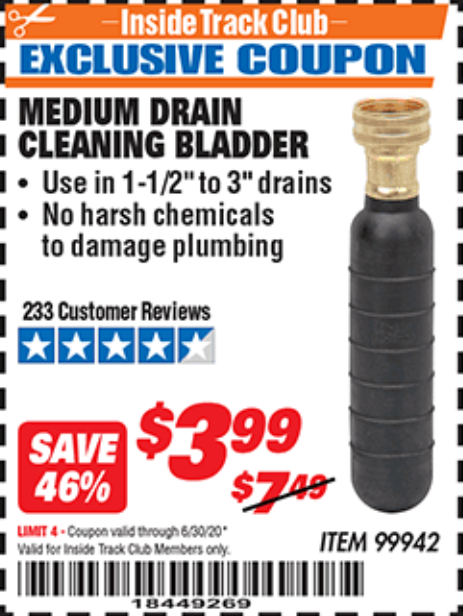 ITC MEDIUM DRAIN CLEANING BLADDER Lot No. 99942 Expired: 6/30/20 - $3.99 Coupon Code: '18449269'