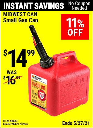 MIDWEST CAN SMALL GAS CAN Lot No. 56421 Expired: 4/29/21 - $14.99 Coupon Code: 'n/a'