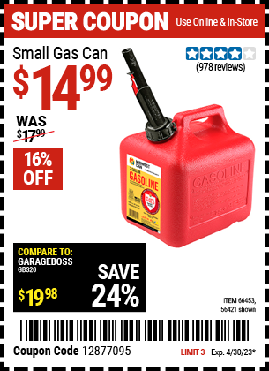 MIDWEST CAN SMALL GAS CAN Lot No. 56421 Expired: 4/30/23 - $14.99 Coupon Code: '12877095'