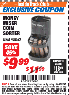 ITC MONEY MISER COIN SORTER Lot No. 98052 Expired: 3/31/18 - $9.99 Coupon Code: '10797390'