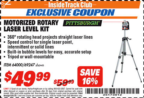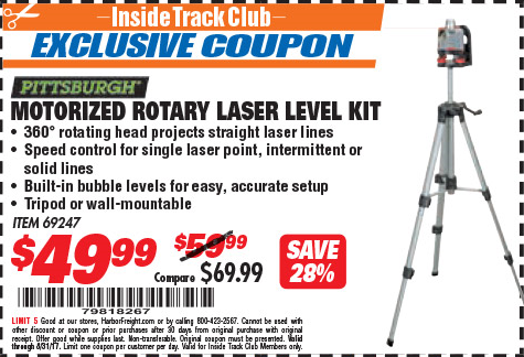 ITC MOTORIZED ROTARY LASER LEVEL KIT Lot No. 69247 Expired: 8/31/17 - $49.99 Coupon Code: '79818267'