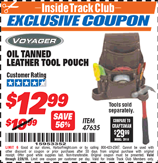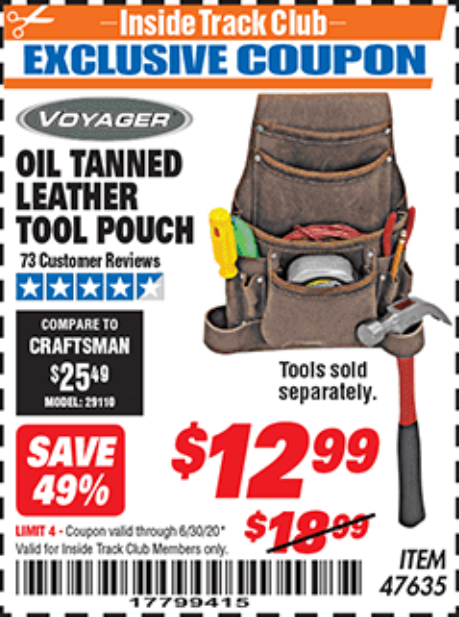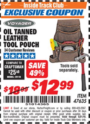 ITC OIL TANNED LEATHER TOOL POUCH Lot No. 47635 Expired: 5/31/19 - $12.99 Coupon Code: '51014365'