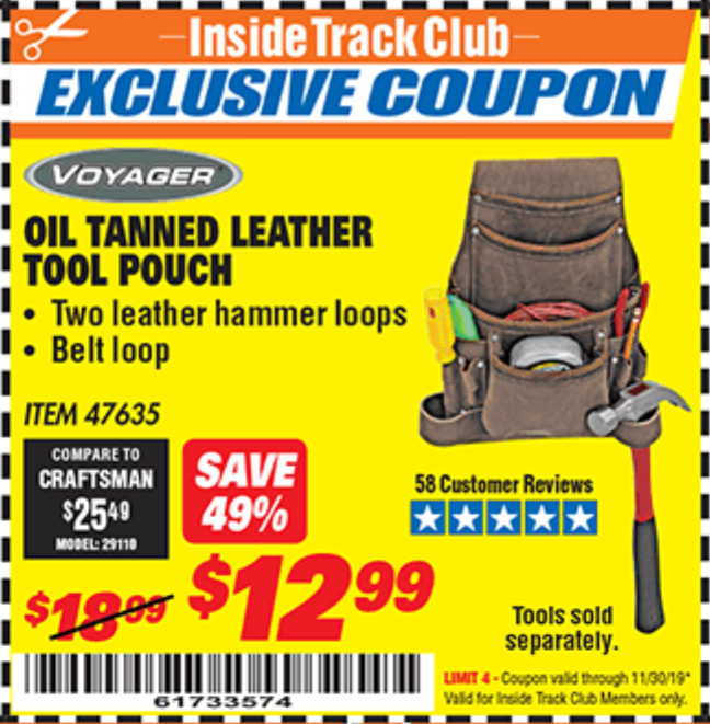 ITC OIL TANNED LEATHER TOOL POUCH Lot No. 47635 Expired: 11/30/19 - $12.99 Coupon Code: '61733574'