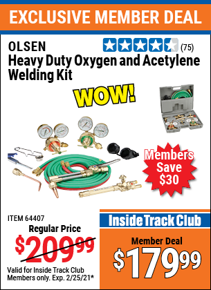 ITC OLSEN HEAVY DUTY OXYGEN AND ACETYLENE WELDING KIT Lot No. 64407 Expired: 2/25/21 - $179.99 Coupon Code: 'n/a'