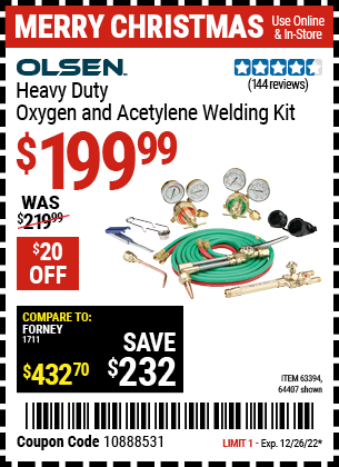 OLSEN HEAVY DUTY OXYGEN AND ACETYLENE WELDING KIT Lot No. 64407 Expired: 12/26/22 - $199.99 Coupon Code: '10888531'