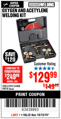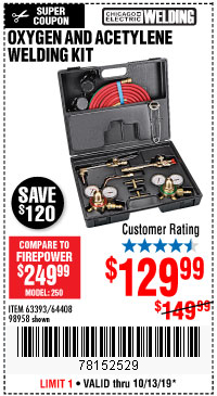 OLSEN MEDIUM DUTY OXYGEN AND ACETYLENE WELDING KIT Lot No. 64408 Expired: 10/13/19 - $129.99 Coupon Code: '78152529'