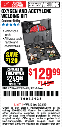 OLSEN MEDIUM DUTY OXYGEN AND ACETYLENE WELDING KIT Lot No. 64408 Expired: 2/23/20 - $129.99 Coupon Code: '76932135'