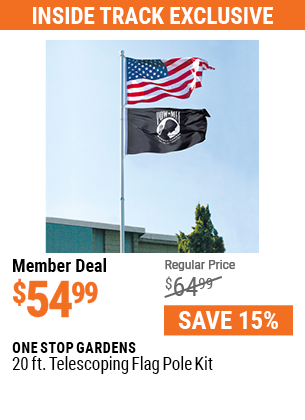 ONE STOP GARDENS 20 FT. TELESCOPING FLAG POLE KIT Lot No. 64344/95598/64342 Expired: 6/30/19 - $49.99 Coupon Code: '33673087'