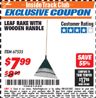 ITC ONE STOP GARDENS LEAF RAKE WITH WOOD HANDLE Lot No. 67535 Valid Thru: 10/30/25 - $9.99 Coupon Code: 'n/a' (current price - 10% = 0) add to list