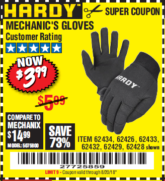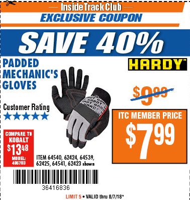 PADDED MECHANICS GLOVES Lot No. 62424/62423/62425 Expired: 8/20/18 - $3.99 Coupon Code: '27725859'