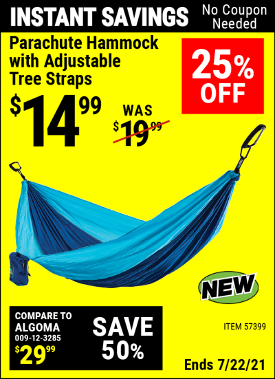 PARACHUTE HAMMOCK WITH ADJUSTABLE TREE STRAPS Lot No. 57399 Expired: 7/22/21 - $14.99 Coupon Code: 'n/a'