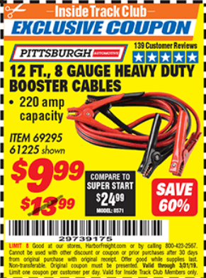 ITC PITTSBURGH 12 FT. 8 GAUGE JUMPER CABLES Lot No. 61225/69295 Expired: 3/31/20 - $9.99 Coupon Code: '23657759'