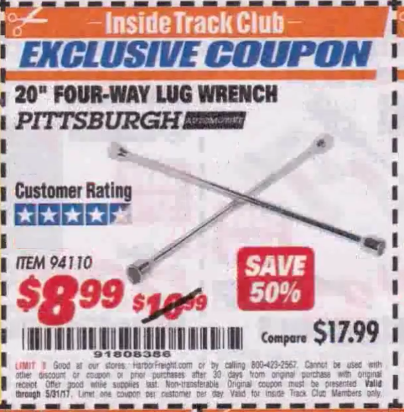 ITC PITTSBURGH 20 IN. FOUR-WAY LUG WRENCH Lot No. 94110 Expired: 5/31/17 - $8.99 Coupon Code: '91808386'